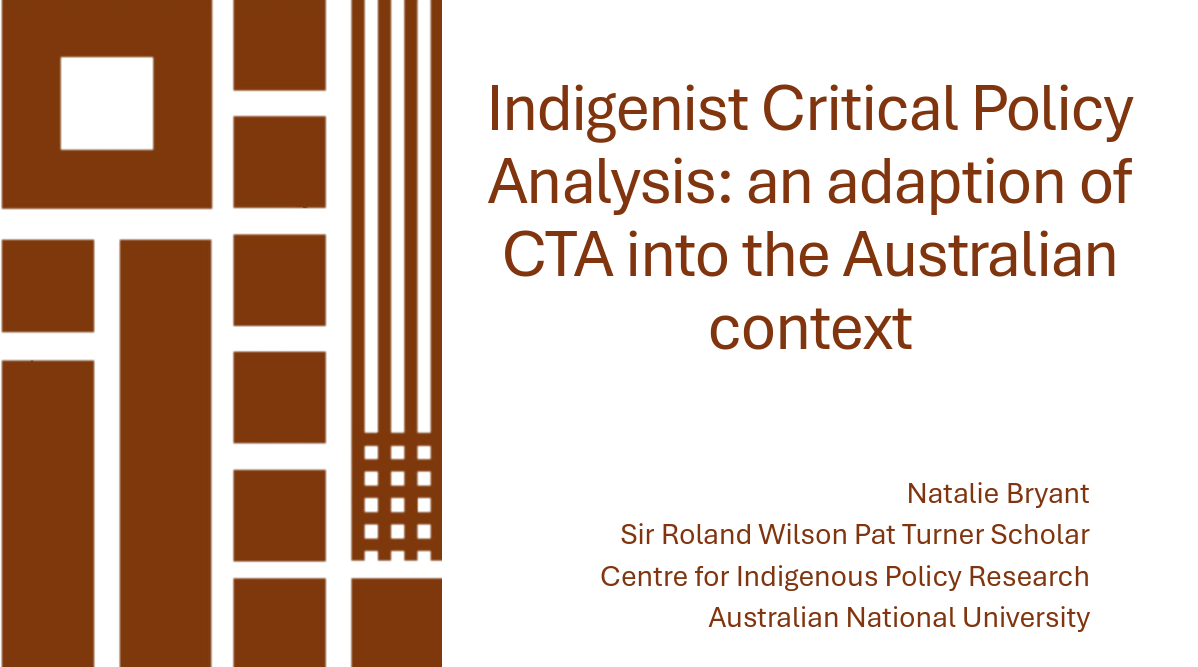 | | Indigenist Critical Policy Analysis: an adaption of CTA into the Australian context - recorded presentation Natalie Bryant