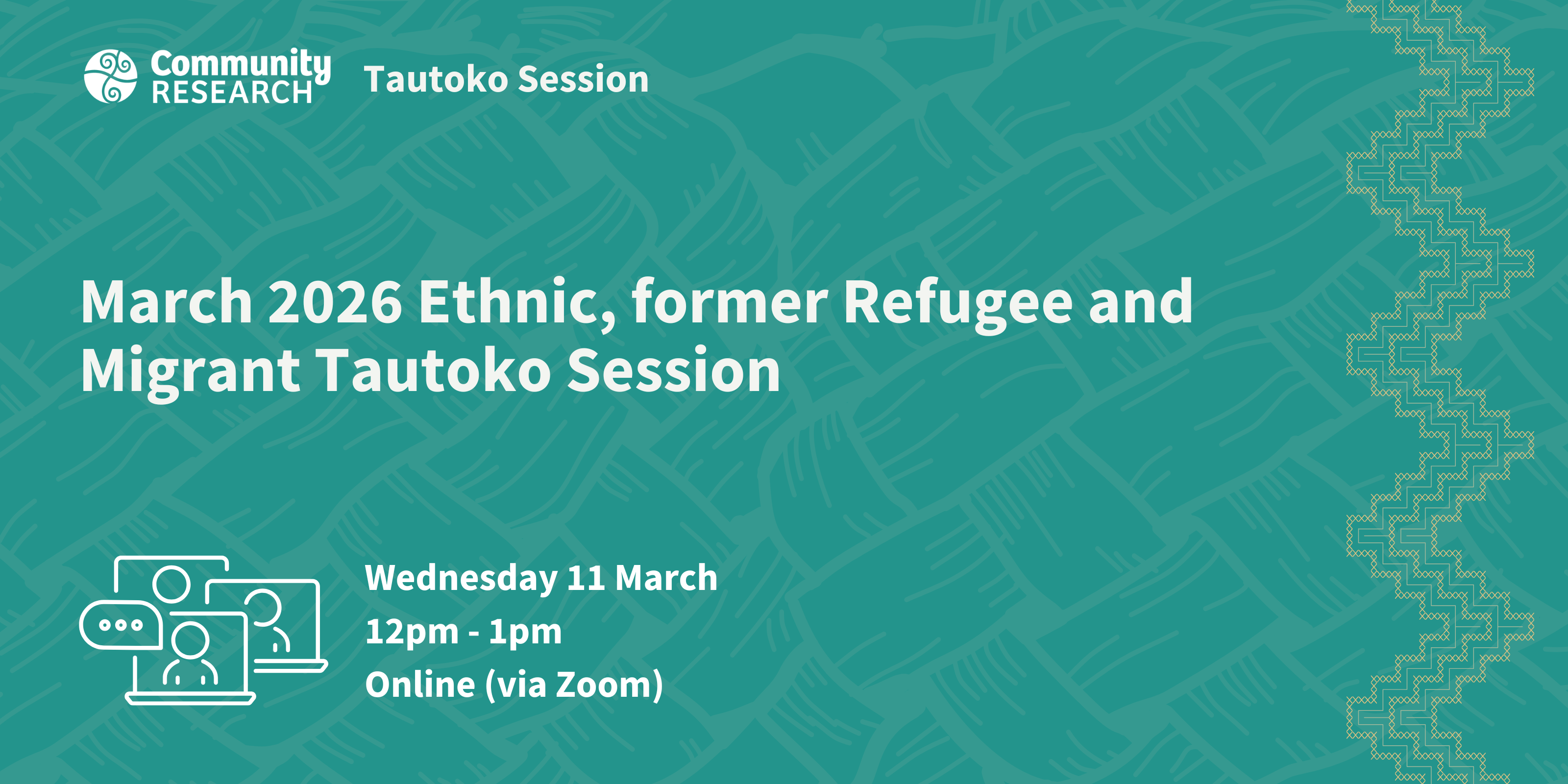 Join us for our first Tautoko session for 2026 and connect with other researchers, former refugees, and migrant peers who are passionate about research with, by and for ethnically diverse communities.This session will have time for: