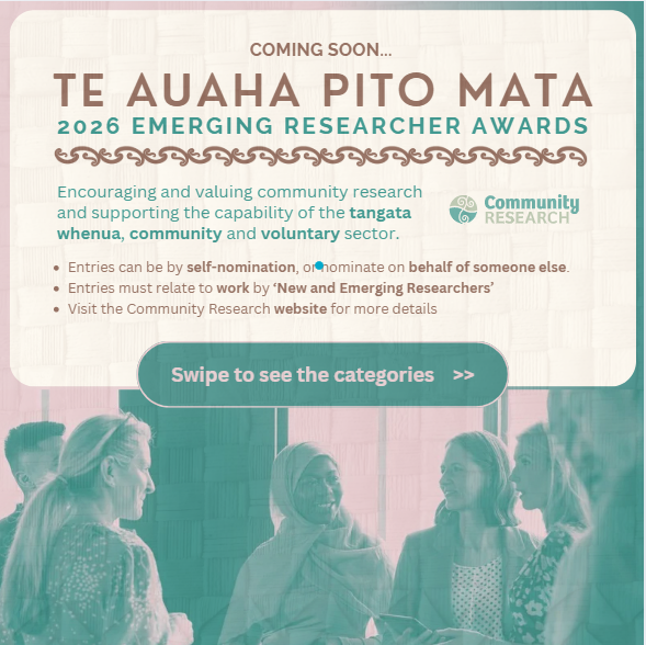 We’re inviting partners to stand with us in celebrating the next generation of community researchers. Supporting the Te Auaha Pito Mata Awards is a meaningful way to uplift emerging voices and the research that strengthens communities across Aotearoa. 👉 Keen to get involved?