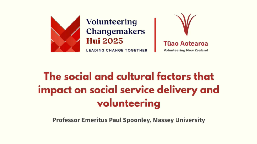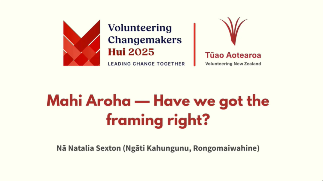 We teamed up with Tūao Aotearoa - Volunteering New Zealand to record sessions for the Volunteering Changemakers Hui 2025. This gathering brought together leaders, advocates, and community voices to celebrate the impact of volunteering and explore how we can collectively strengthen the sector across Aotearoa. Community Research is pleased to add the following two recorded sessions to our Volunteering and mahi aroha special collection: |
