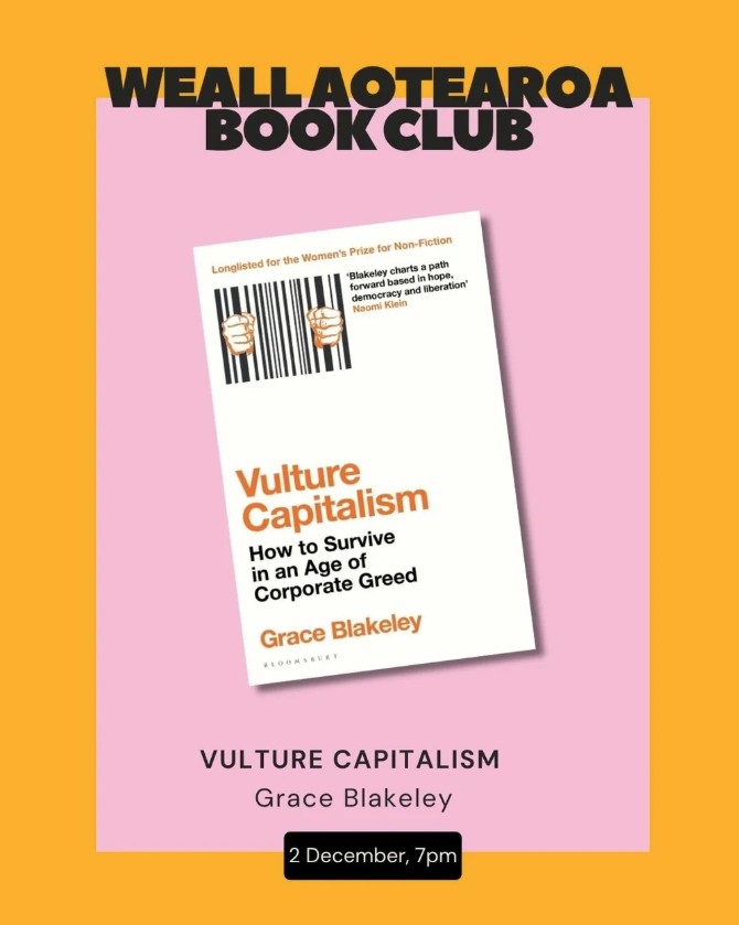 At the next WEAll book club, we will be discussing 'Vulture Capitalism: Corporate Crimes, Backdoor Bailouts, and the Death of Freedom' by Grace Blakeley.