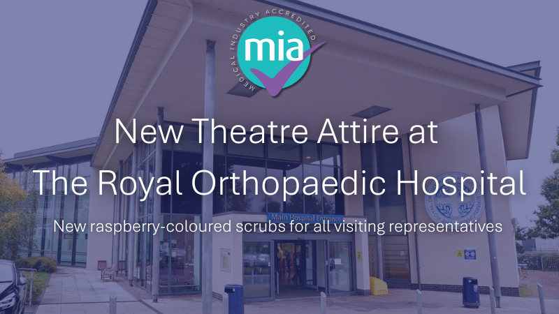 I am writing to inform you that, effective from Wednesday 30th July, all company representatives (Reps) will be required to wear raspberry-coloured scrubs while on site at the Royal Orthopaedic Hospital Birmingham.
