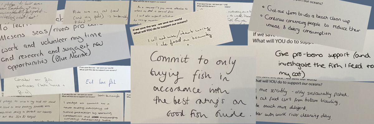 When concluding the private screening of Ocean with David Attenborough, postcards were handed out with a simple question: What will YOU do to support our oceans? Over 80 came back. What stands out wasn't just the number – it was the specificity. These weren't vague promises to "be more sustainable." The audience pledged concrete commitments: timelines, measurements, and real accountability. From personal behaviour to professional undertakings, political pressure to direct action – pledges representing thousands of meals sourced differently, hundreds of pro bono hours offered, dozens of letters to MPs, firms restructuring their investment analysis, and countless conversations extending awareness. Individually, these actions seem small. Collectively, they represent the legal profession beginning to deploy its unique leverage toward ocean protection. Find out more, and discover how you can help protect the ocean in this blog. |